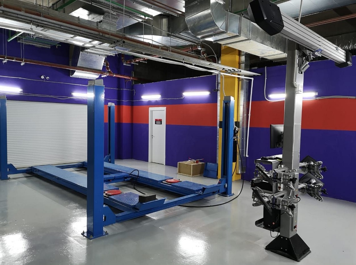 Оборудован ограничителями заезда, предотвращающими скатывание автомашины.